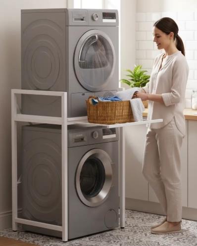 Ağır çelik borulardan üretilen bu sağlam çamaşır makinesi düzenleyici, aynı zamanda kurutucunuzu çamaşır makineniz ile aynı alanda kullanmanıza olanak sağlıyor. Kurutucunuz yoksa çamaşır deterjanı, kumaş yumuşatıcısı, havlu, tuvalet kağıdı, saksı bitkileri veya küçük depolama kutularını kolayca barındırabiliyorsunuz. Tam dolu olsa bile sallanma veya sarkma olmaz.